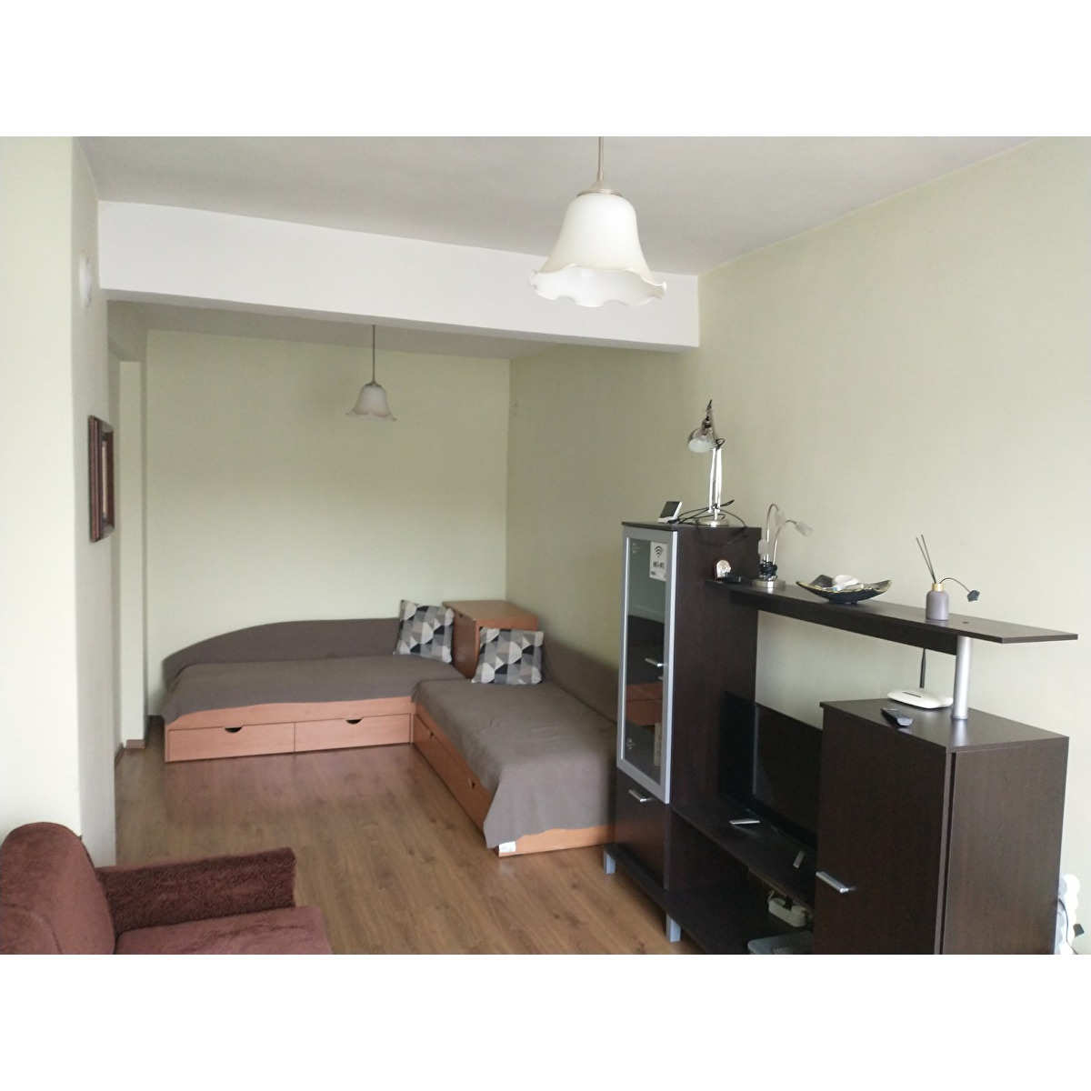 Намира се в идеалния център до църквата "Света Троица" в Габрово. Обзаведен. Спялня, хол, кухня-трапезария, баня и тоалетна заедно. Без преходи.